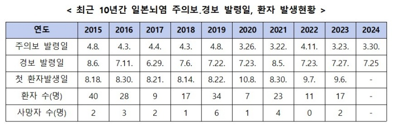 전국 일본뇌염 경보 예방접종 예방방법 확인하세요