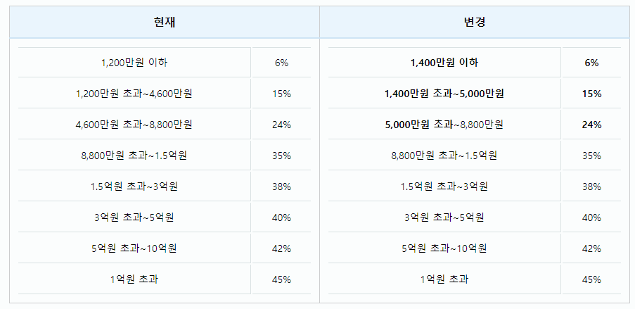 2024년 소득세율표 변화