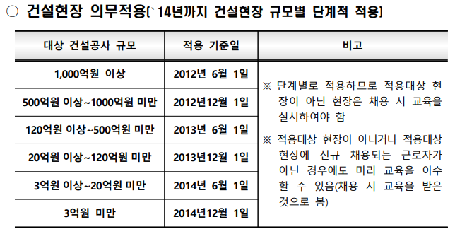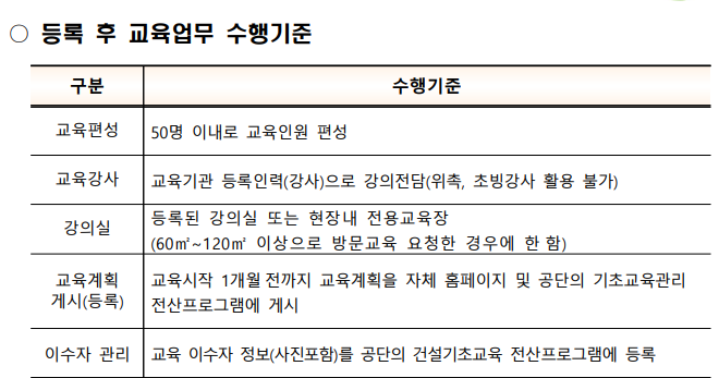 해당 교육은 일용근로자를 채용한 건설업 사업주의 의무이므로 교육 소요비용은 사업주가 부담해야하니 기초안전보건교육을 이수하는 분들은 부담없이 이수를 하면 됩니다.