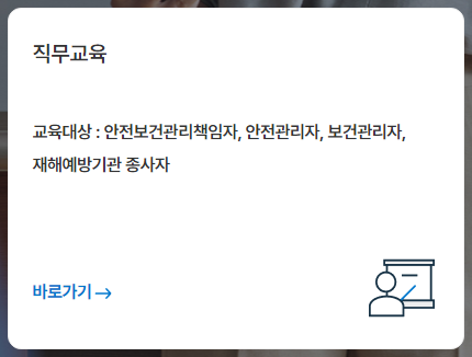 건설업을 하시는 분들은 기초안전보건교육을 의무적으로 이수해야 하는데 안전보건교육 사이트에서 온라인으로 신청할 수 있습니다.