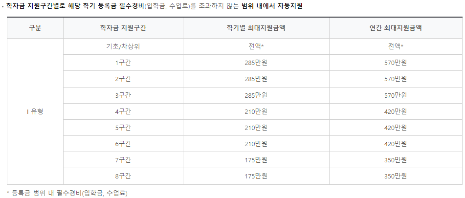 국가장학금 소득분위별 지급금액