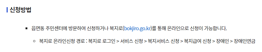장애인 연금 지급대상 및 금액을 파악하셨다면, 가까운 읍면동 주민센터를 방문하거나 온라인으로 복지로 사이트를 접속해서 해당 연금을 신청하실 수 있습니다.