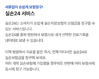 실손24앱은 사용자 친화적인 인터페이스를 제공하며, 간편하게 실손의료 보장을 청구할 수 있도록 도와줍니다.
