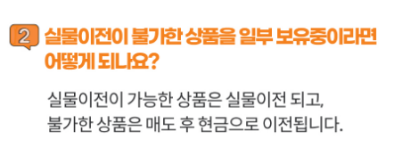 A: 아닙니다. 주식, 리츠, 파생상품 등 일부 상품은 실물이전이 불가능하고 현금화 후 이동해야 합니다.