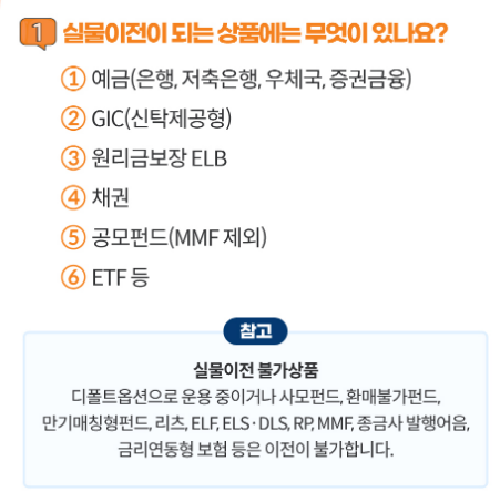 Q: 퇴직연금 실물이전은 모든 상품에 적용되나요?