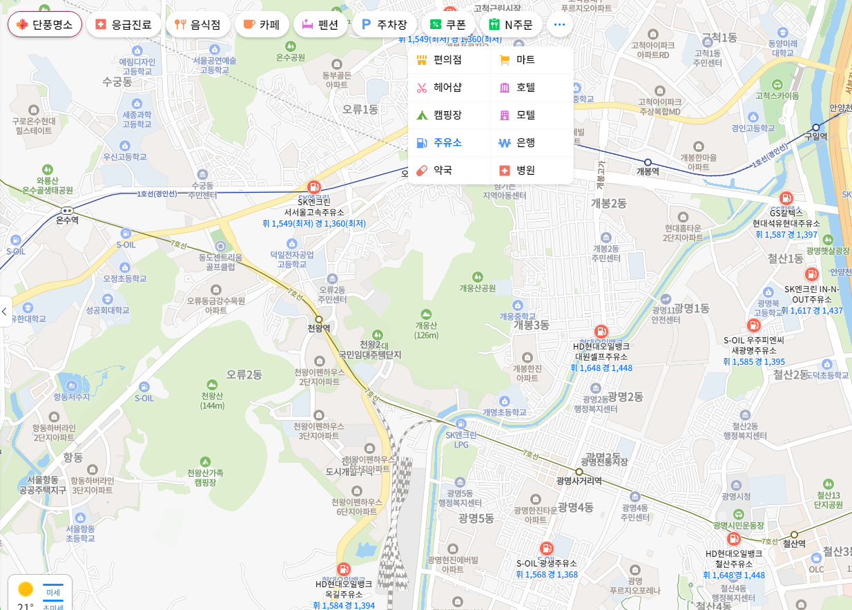 네이버 지도와 카카오맵을 사용하면 주유소의 위치와 가격 정보를 지도에서 직관적으로 확인할 수 있어요.