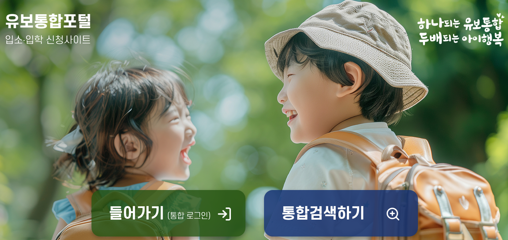 유보통합 포털사이트는 그동안 따로 나누어져 있던 어린이집 입소와 유치원 입학 신청 시스템을 하나로 통합했어요.