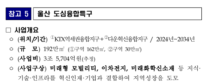 울산 도심융합특구는 KTX 울산역세권과 울산테크노파크를 중심으로 모빌리티, 이차전지, 수소 등 핵심 전략산업을 육성하고 있어요.