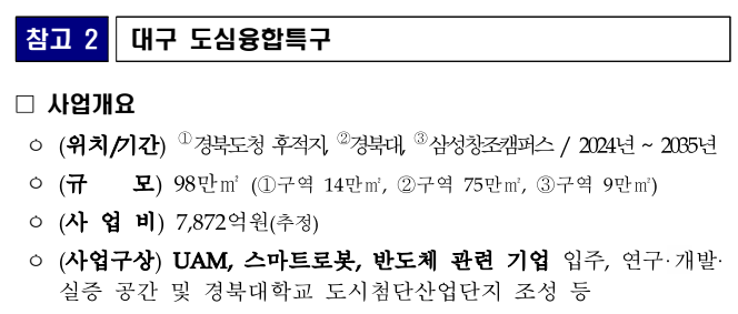 대구 도심융합특구는 경북대학교와 삼성창조캠퍼스를 중심으로 신산업 혁신거점으로 자리 잡고 있어요.