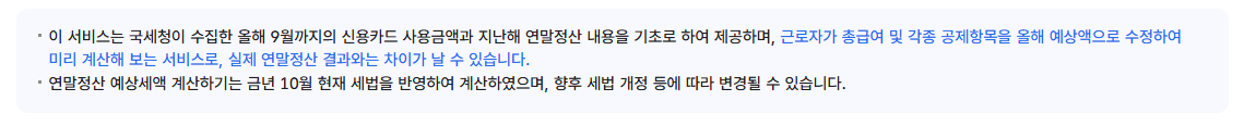이 서비스는 매년 갱신된 최신 데이터를 바탕으로 자신의 연말정산 결과를 예측할 수 있게 도와줄 수 있어요.