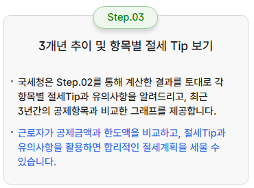 미리 확인함으로써 공제받을 수 있는 항목을 더 자세히 알게 되고, 이를 준비하는 데 필요한 시간을 절약할 수 있겠죠?