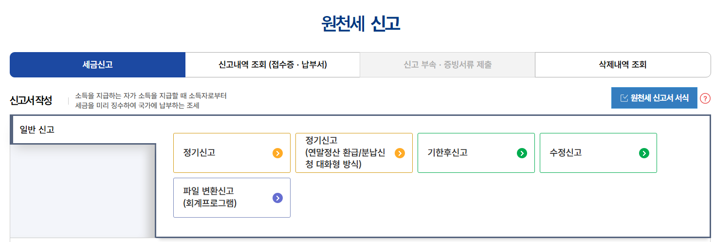 홈택스에서 원천세 신고하기