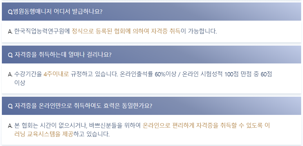 Q: 병원동행매니저 자격증 없이도 취업할 수 있나요?