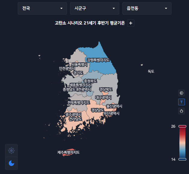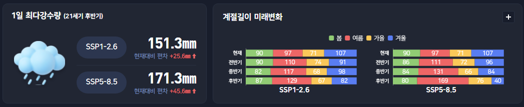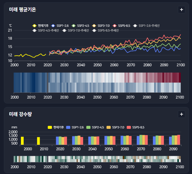특히 과거부터 현재, 그리고 미래에 예상되는 기후 변화까지 시계열로 볼 수 있다는 점이 특징입니다.