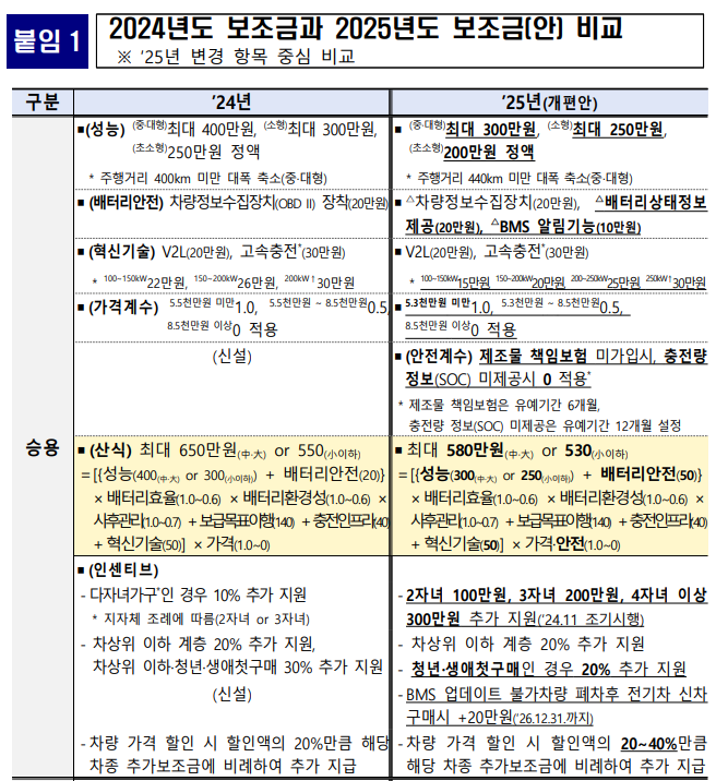 이는 성능이 우수한 전기차에 대한 인센티브를 강화하고, 주행거리가 짧은 전기차의 개선을 유도하는 정책이에요.