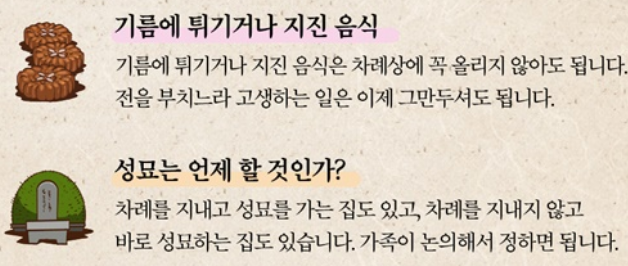 예를 들어, 전통적으로 차례상에 올리던 음식을 꼭 같은 방식으로 만들 필요는 없어요.