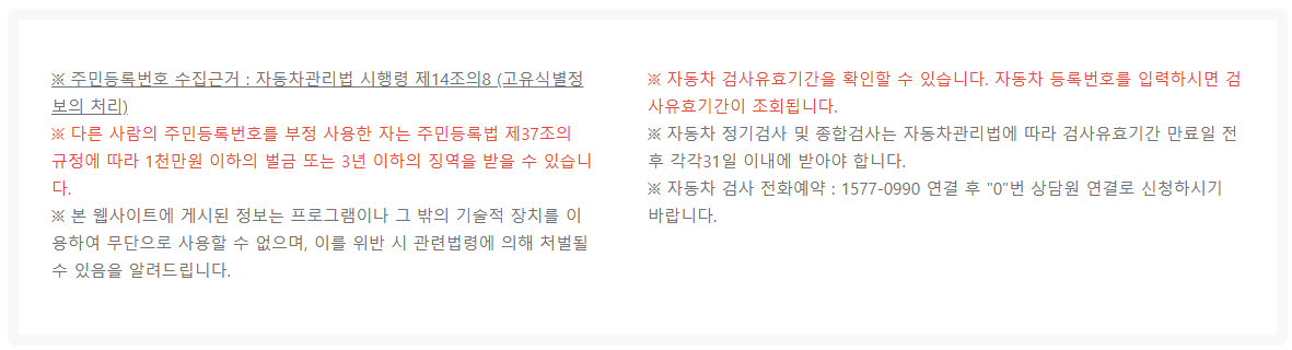 2. 교통안전공단 홈페이지 조회: 차량번호를 입력하면 검사 대상 여부와 검사 유효기간을 쉽게 조회할 수 있어요.