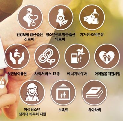 대표적으로 '임신·출산 진료비 지원', '기저귀·조제분유 지원', '청소년산모 의료비 지원' 등의 혜택이 포함돼요.