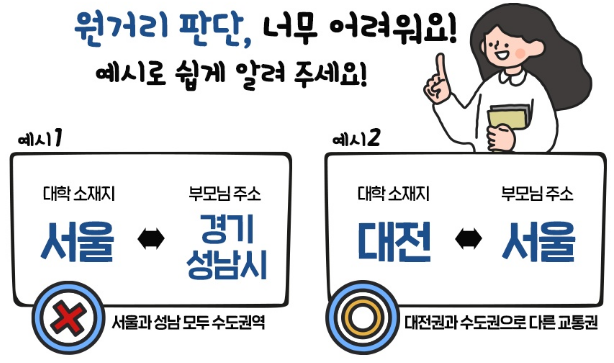 예를 들어 서울에 사는 학생이 부산에 있는 대학에 진학하면 원거리로 인정되는 거죠.