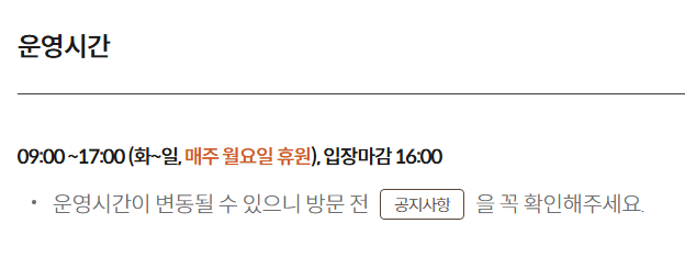 홈페이지에서 가장 먼저 확인해야 할 것은 운영 시간과 예약 가능 여부예요. 봄과 가을에는 방문객이 몰려 조기 마감되는 경우가 많기 때문에, 방문 일정을 확정했다면 예약을 서두르는 것이 좋아요.