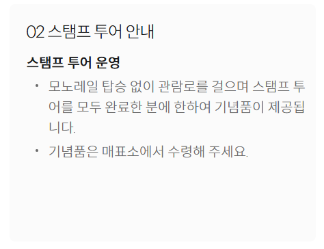 1. 모노레일은 오전 9시부터 오후 5시까지 운행되지만, 계절에 따라 변동될 수 있어요.