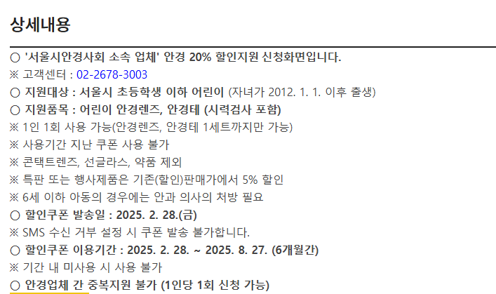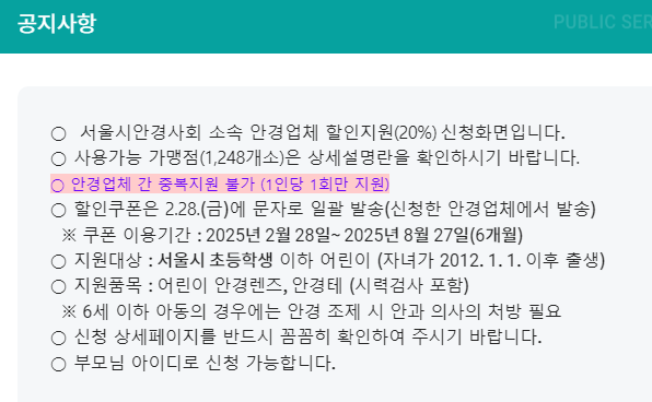 - 중복 신청 여부: 이전 지원을 받은 경우라도 올해 다시 신청할 수 있어요. 하지만 같은 안경업체에서는 중복 신청이 불가능하므로, 다른 업체를 선택해야 해요.