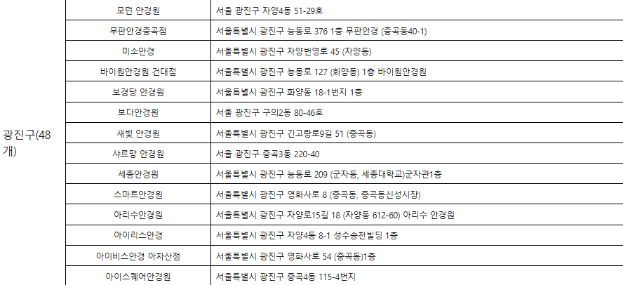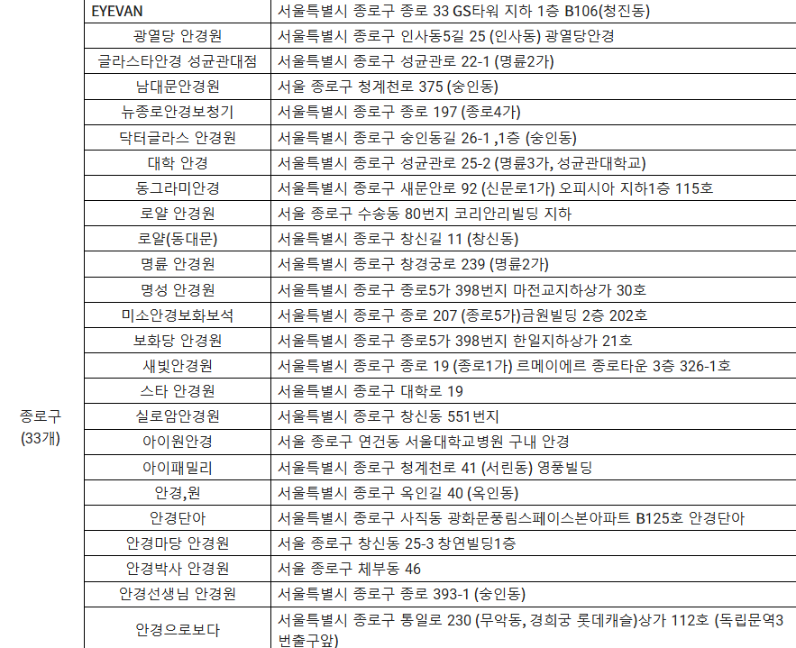 🔽 참여 안경원 리스트 🔽