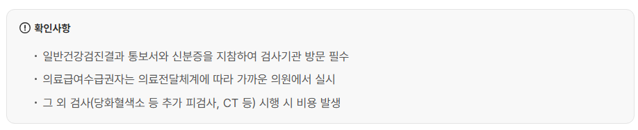 예를 들어 국가암검진이 가능한 병원과 일반 건강검진만 시행하는 병원이 다를 수 있기 때문에, 원하는 검진 항목이 있는 병원을 미리 체크해야 해요.