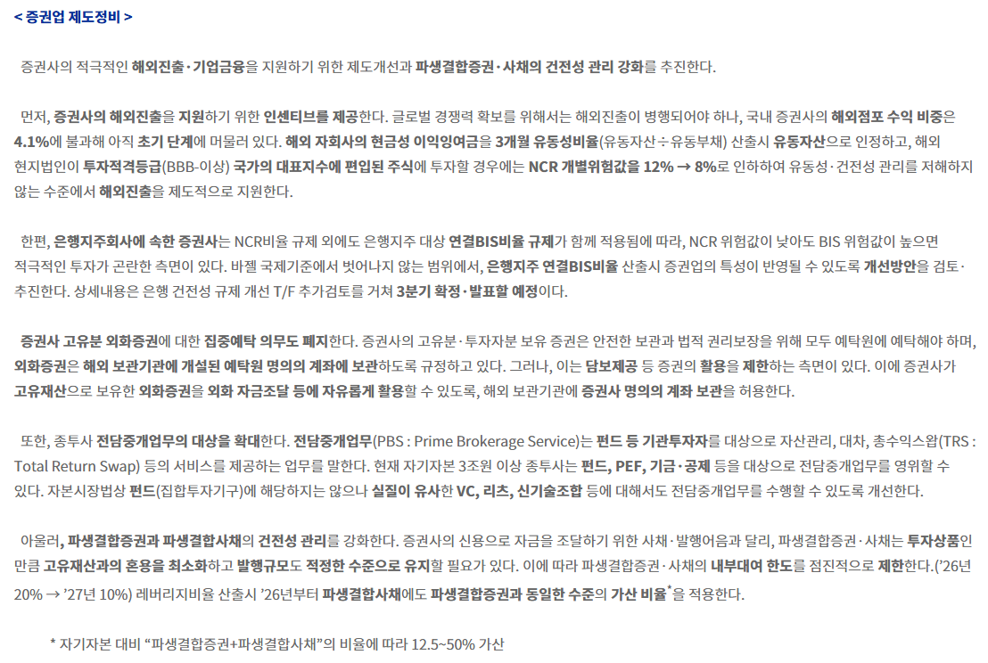 특히 증권사들이 위험을 감수하고 고객 자산을 기업에 배분하면서, 실물경제와 투자금이 연결되는 선순환 구조를 목표로 하고 있어요.