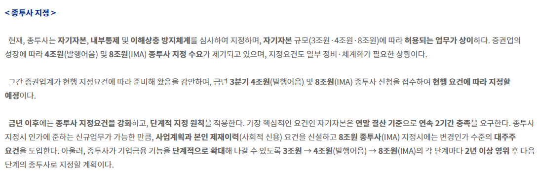 다만 모든 증권사가 이 상품을 취급할 수 있는 것은 아닙니다. 현재 기준으로는 미래에셋증권, NH투자증권, 한국투자증권 등 자기자본 8조 원 이상 보유한 소수의 종합금융투자사업자만 해당 요건을 충족하고 있어요.
