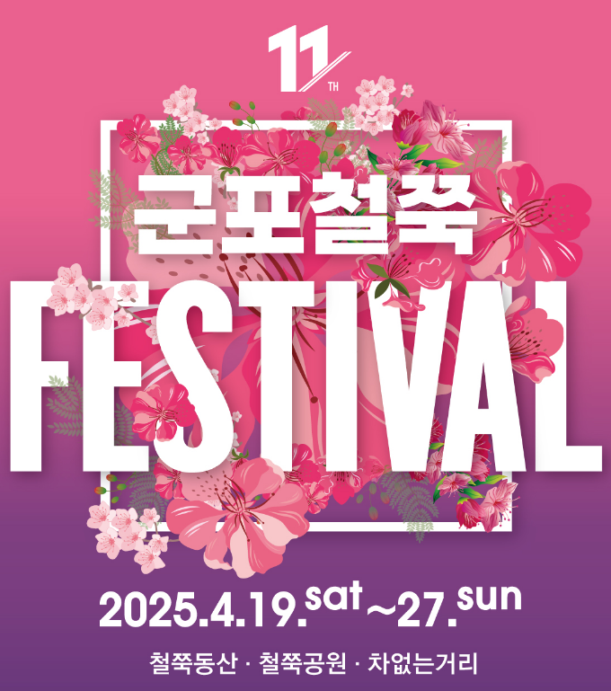 2025년 군포 철쭉축제는 4월 19일(토)부터 4월 27일(일)까지 9일간 진행됩니다.