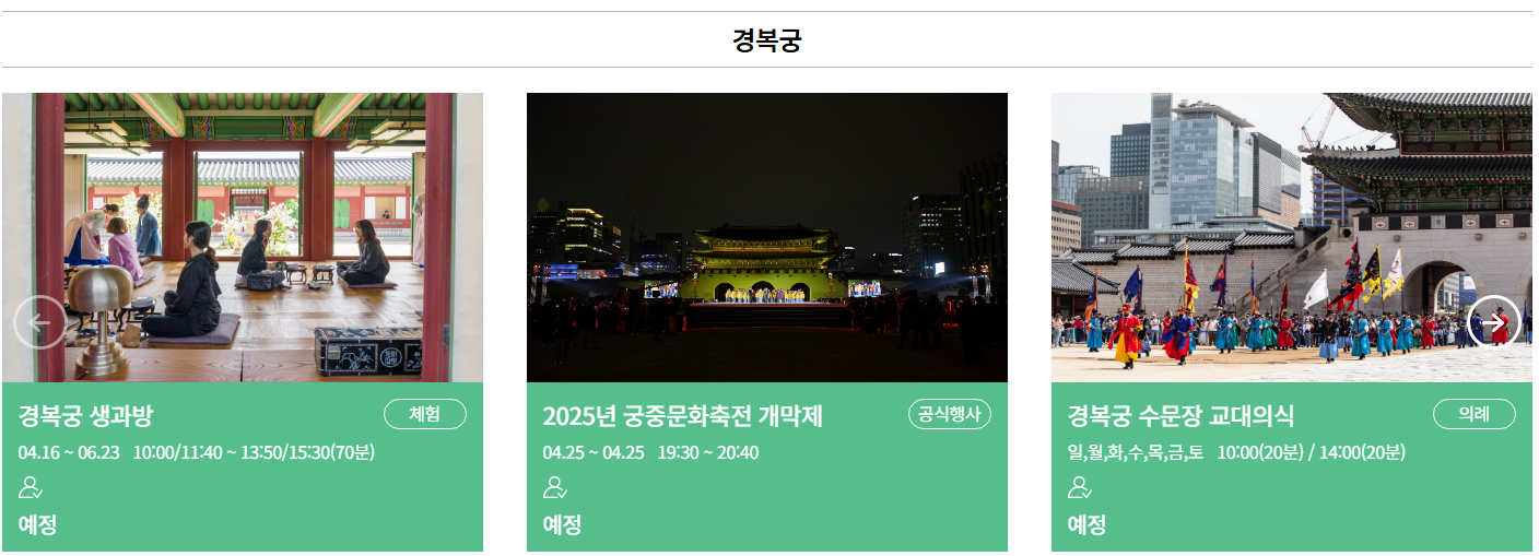 예를 들어 오전에는 경복궁에서 공연을 본 뒤, 오후에는 인근 덕수궁으로 이동해 야간 프로그램까지 이어지도록 구성하면 하루 일정이 알차고 효율적이에요.