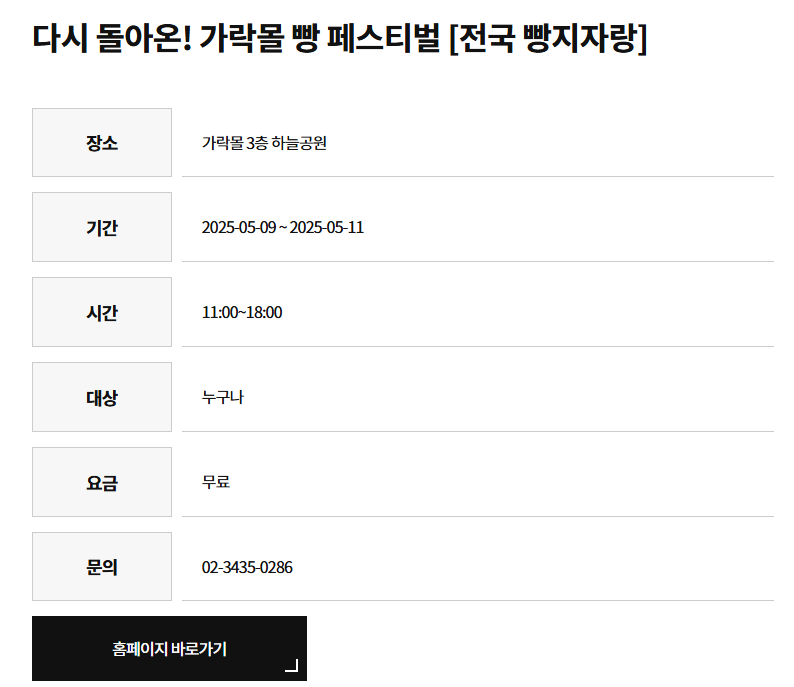 가락몰 빵축제 전국빵지자랑 빵덕후 필독 가이드