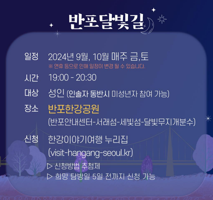 여의도 한강 야경투어는 사전 신청제로 운영되며, 서울시 ‘한강이야기여행’ 누리집에서 원하는 날짜를 선택해 예약할 수 있어요.