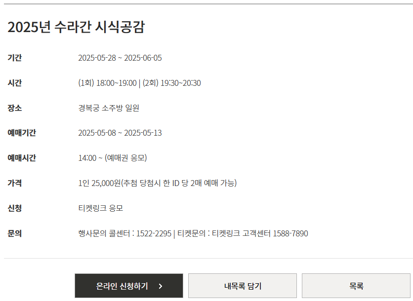 2025년 행사는 문화재청과 한국문화재재단 또는 국가유산진흥원 홈페이지에서 접수할 수 있어요.