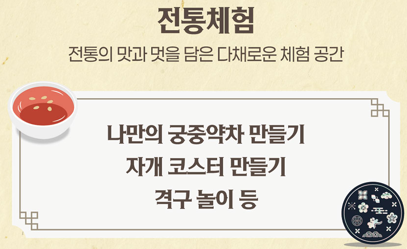 마치 18세기로 타임슬립한 듯한 연출 속에서 조선 후기 궁중 간식문화를 생생히 경험할 수 있는 공간이에요.