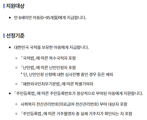 지급대상 확대 만 8세 미만으로