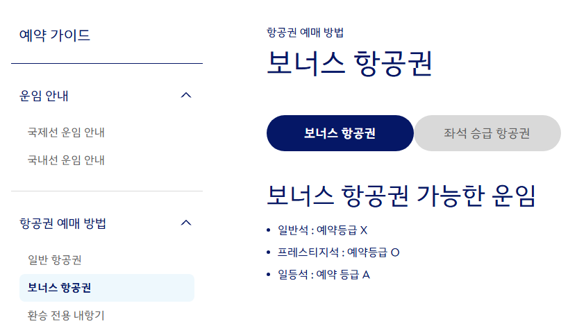 대한항공 마일리지 좌석 업그레이드 하기