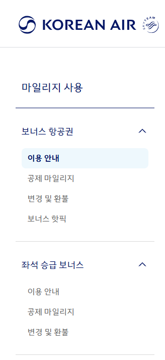 대한항공 마일리지 사용하러가기