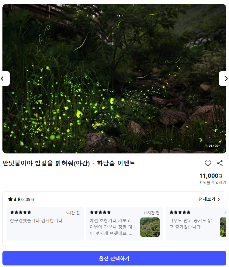 화담숲 반딧불이 축제는 매년 6월 초부터 본격적인 예약이 시작돼요.