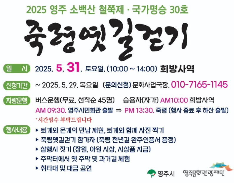 영주역 또는 시외버스터미널에서 축제장까지 셔틀버스가 운영됩니다. 대중교통 이용 시 사전 시간표 확인이 중요하며, 자가용 이용 시 주차 위치도 미리 확인하는 것이 좋아요.