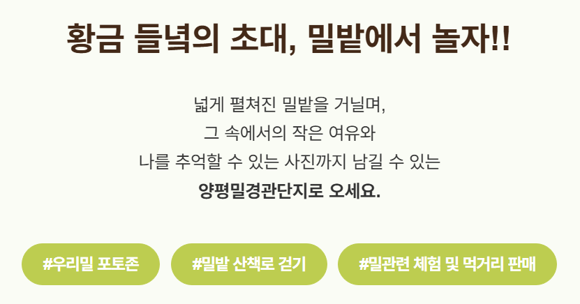 양평 밀축제는 가족 단위 방문객을 위해 ‘밀 놀이터’와 같은 특별 공간을 마련해요.