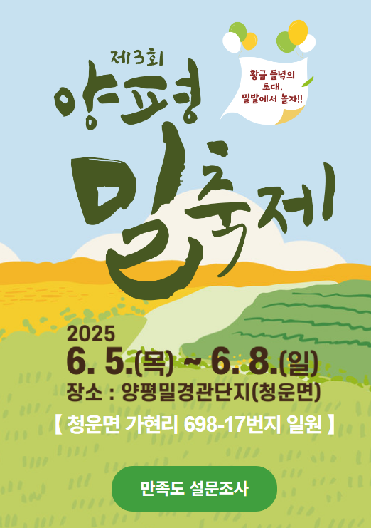 2025년 제3회 양평 밀축제는 6월 5일(목)부터 8일(일)까지 진행된답니다. 이 시기는 밀 수확의 절정기이자 날씨도 따뜻해서 야외 활동에 적합한 시기예요.