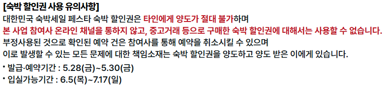 쿠폰은 5월 28일(수)부터 5월 30일(금)까지 3일 동안 발급받을 수 있고, 실제 숙박은 6월 5일(목)부터 7월 17일(목)까지 이용할 수 있어요.
