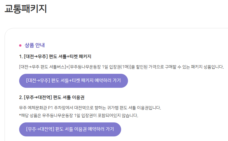 또한 예매 페이지 외에도 지역 내 숙박, 셔틀버스 시간표, 공연 행사 정보까지 자세하게 나와 있어서 초행자도 쉽게 참여할 수 있어요.