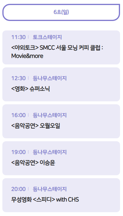 시간표를 미리 체크해 하루의 동선을 짜보는 것도 현장을 200% 즐기는 팁이에요!