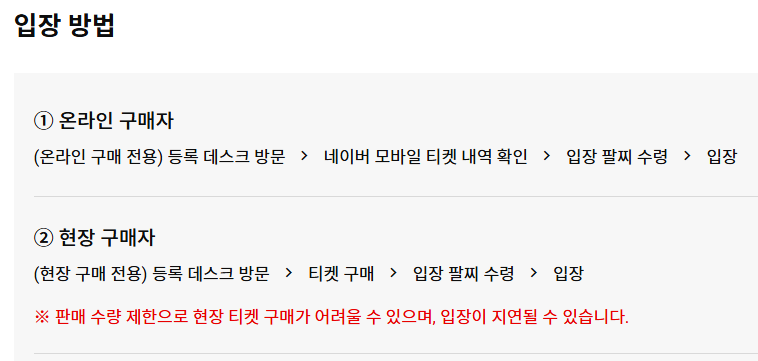 현장에서 직접 입장권을 구매할 수도 있지만, 줄이 길어지는 경우가 많아 불편할 수 있어요.