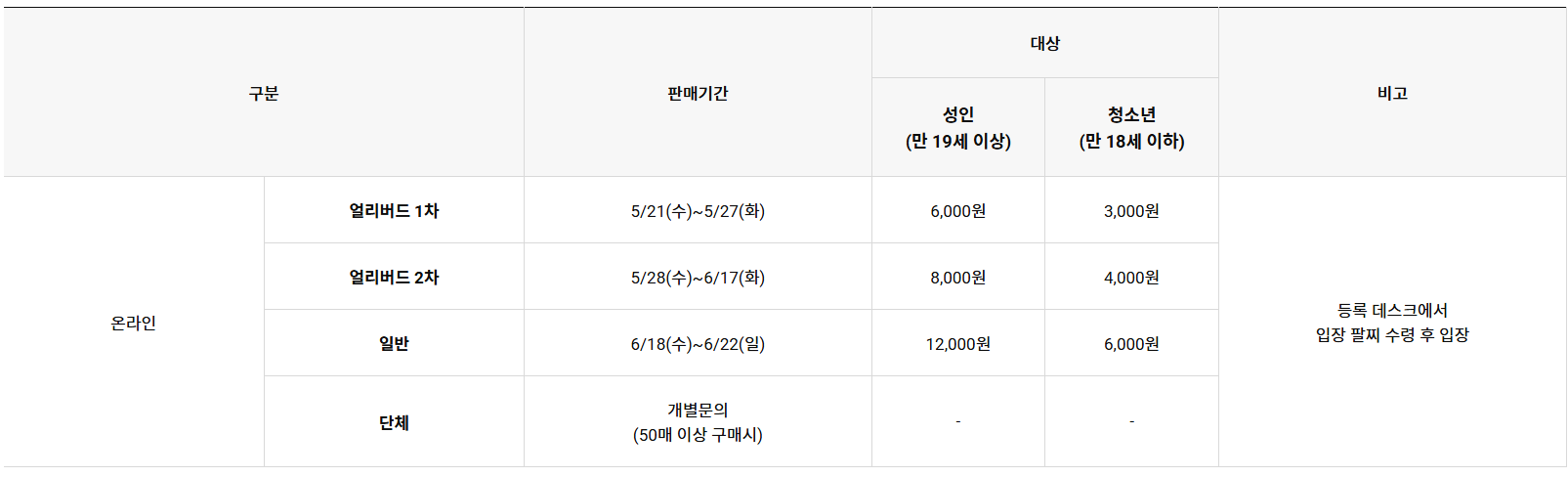 온라인 예매처를 통한 사전구매
