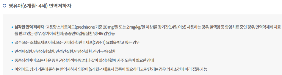 또한 생후 6개월 이상 면역저하자도 코로나 예방접종 무료대상에 포함돼요.