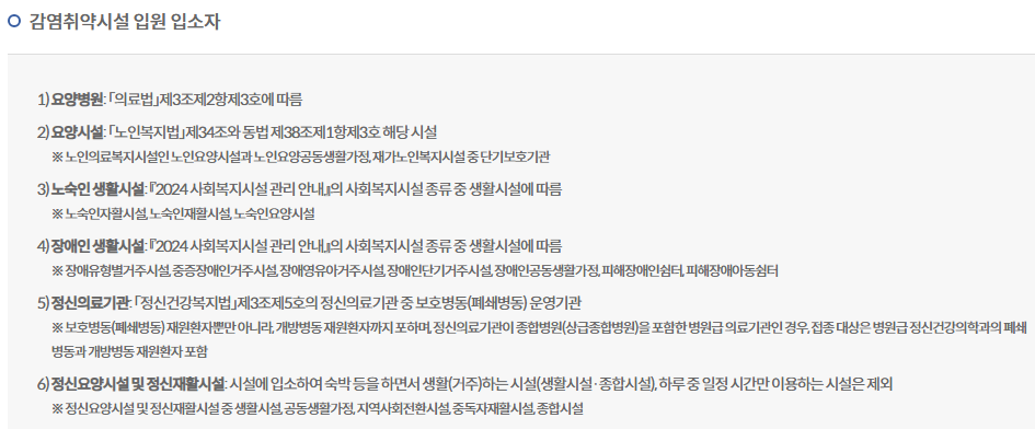 요양병원, 요양시설 등 감염취약시설에 입원 또는 입소한 분들도 자동으로 대상이 돼요.